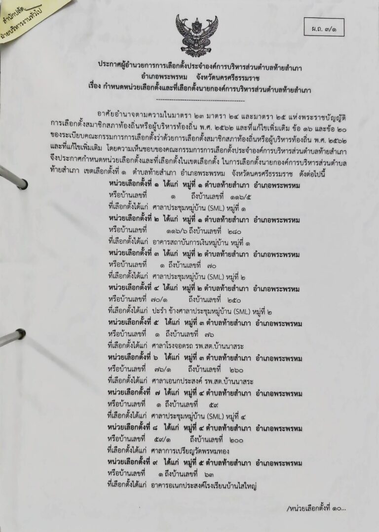 ประกาศผู้อำนวยการการเลือกตั้งประจำองค์การบริหารส่วนตำบลท้ายสำเภา อำเภอพระพรหม จังหวัดนครศรีธรรมราช