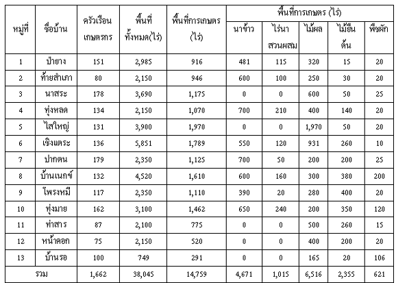 – อาชีพการเกษตรทำนาทำสวน คิดเป็นร้อยละ 35 ของประชากรทั้งตำบล