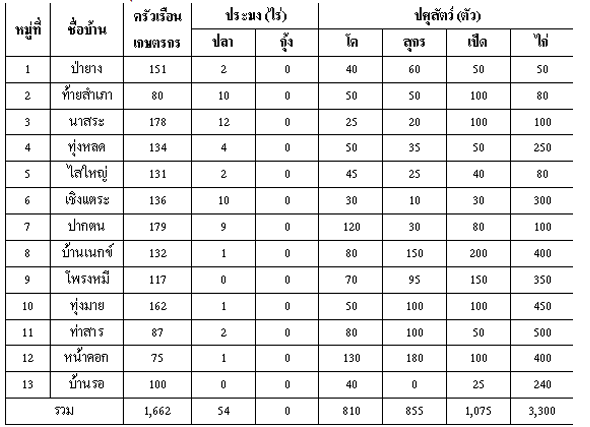 หน่วยธุรกิจในเขตตำบล พื้นที่ประมง/ปศุสัตว์