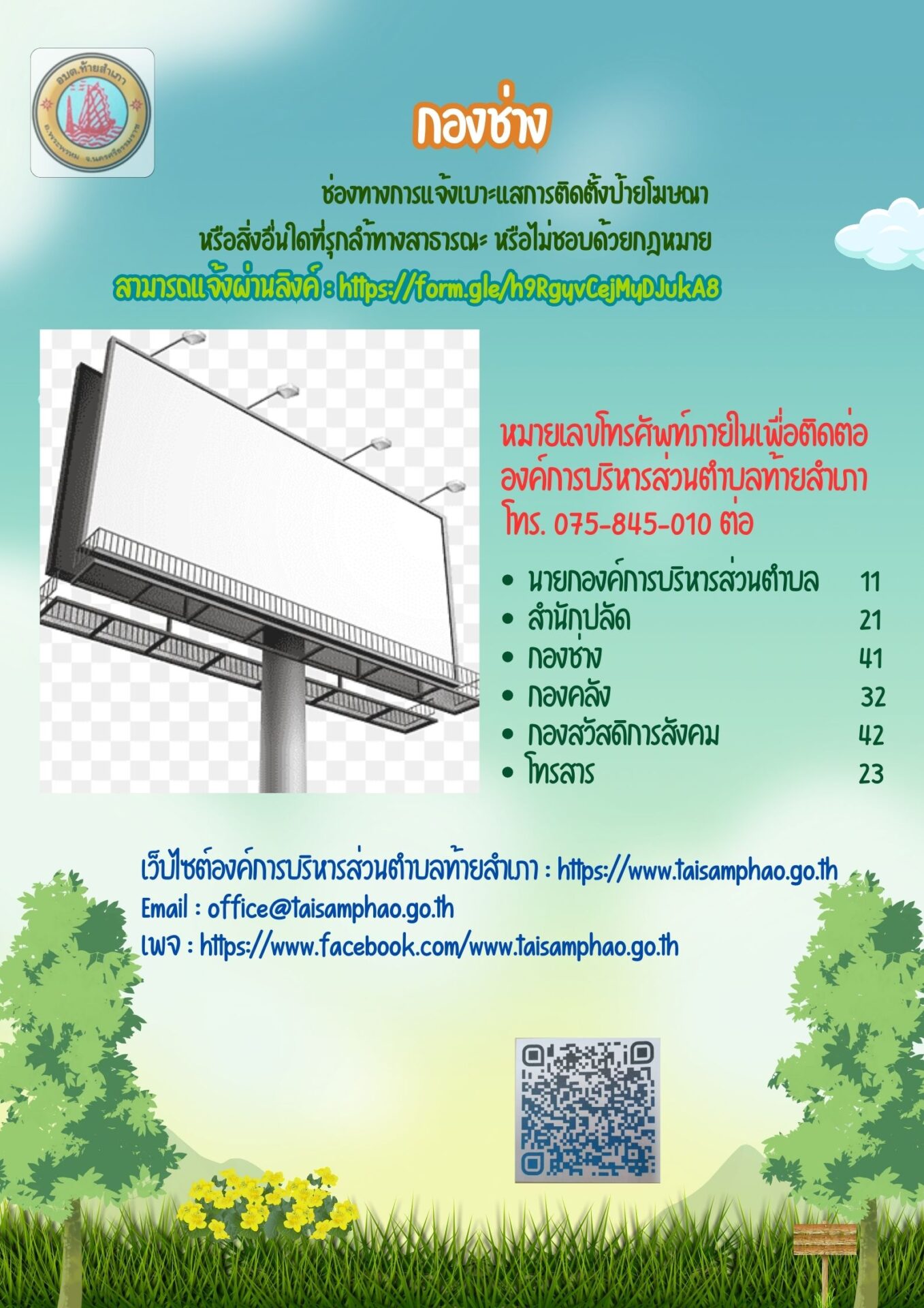 ช่องทางการแจ้งแบะแสการติดตั้งป้ายโฆษณา