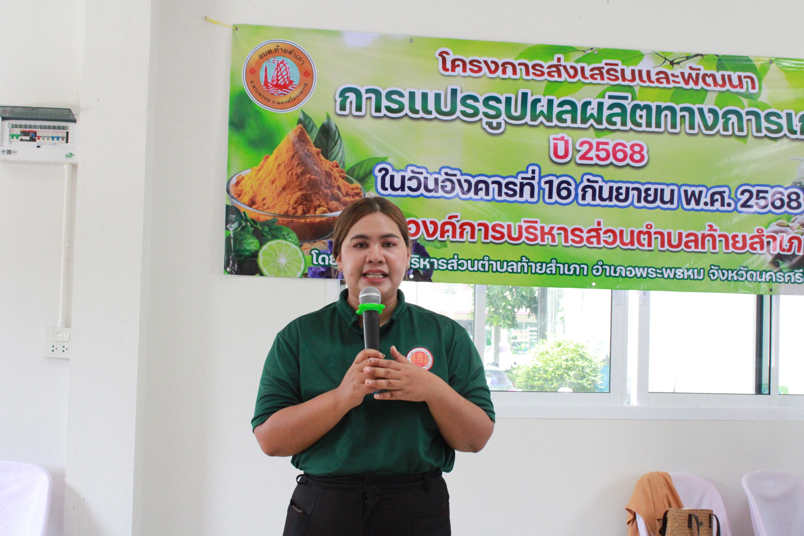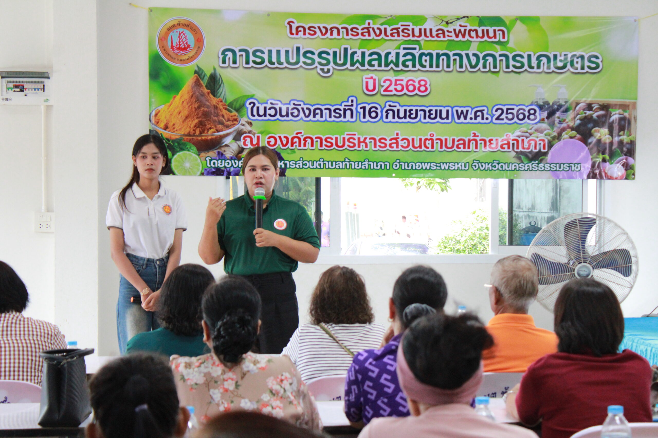 นายคมกฤต คลิ้งเชื้อ นายกองค์การบริหารส่วนตำบลท้ายสำเภา เป็นประธานเปิดโครงการส่งเสริมและพัฒนาการแปรรูปผลผลิตทางการเกษตรประจำปี 2568 พร้อมด้วย