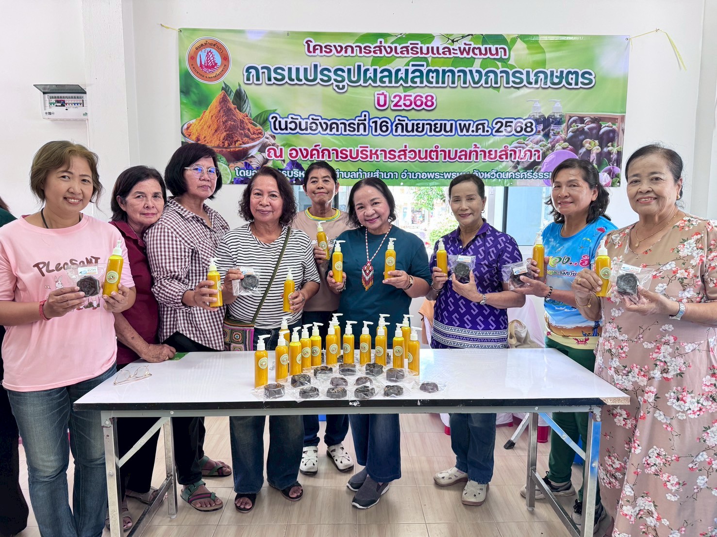 การจัดโครงการส่งเสริมและพัฒนาการแปรรูปผลผลิตทางการเกษตรประจำปี 2568 (การทำสบู่แหลว และสบู่ก้อน จากขมิ้น มะขาม และมังคุด)วัตถุประสงค์เพื่อสร้างความรู้และความเข้าใจในการแปรรูปสินค้าจากผลผลิตทางการเกษตรมีการส่งเสริมการแปรรูปสินค้าเกษตรให้มีมูลค่าเพิ่มยิ่งขึ้นสามารถยืดอายุการเก็บรักษาและจำหน่ายสินค้าได้รวมทั้งสร้างความเข้มแข็งให้กลุ่มเกษตรกรเป็นกลไกขับเคลื่อนนโยบายรัฐในการพัฒนาเศรษฐกิจสังคมในชุมชนตำบลท้ายสำเภา