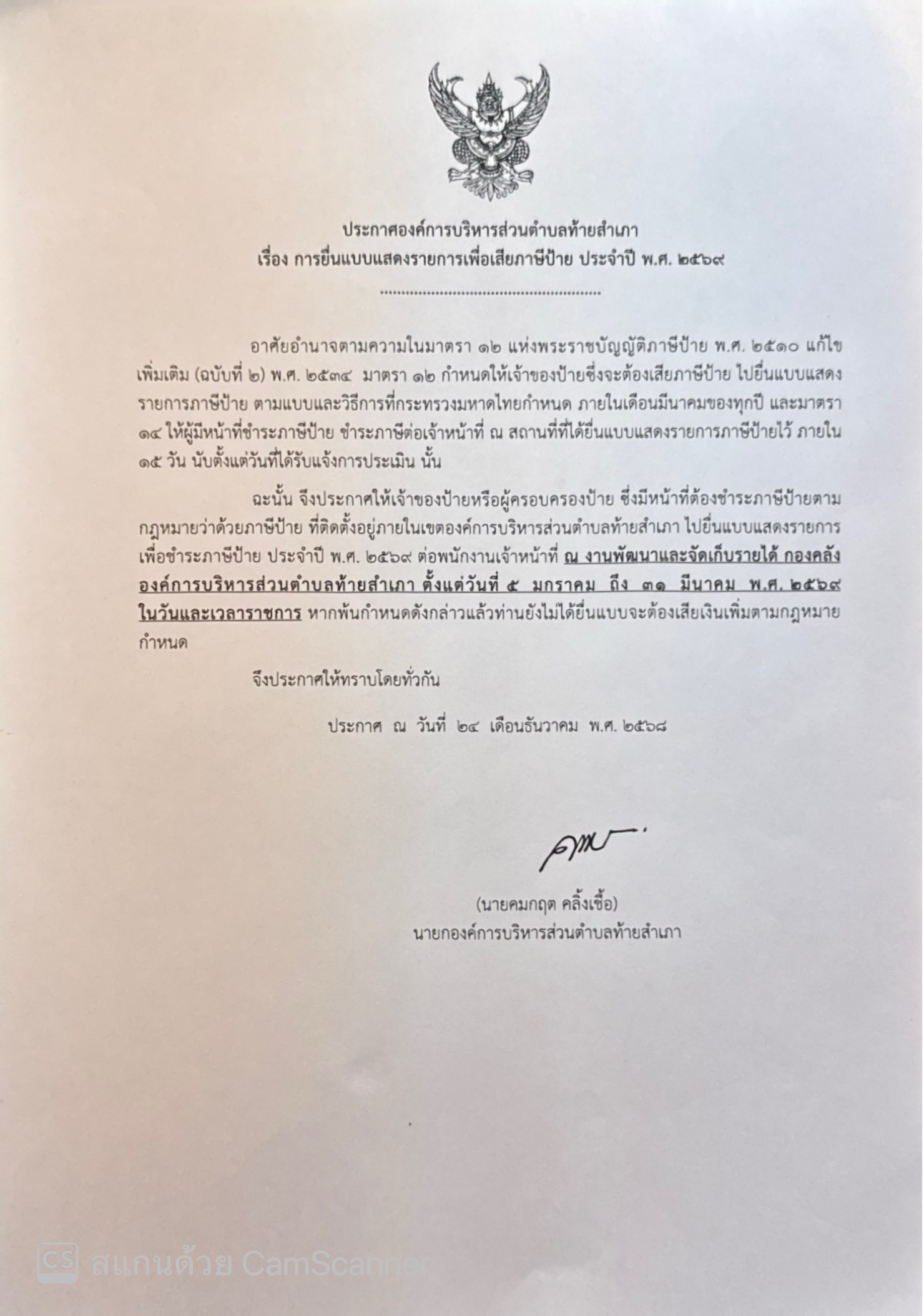 ประกาศ ณ วันที่ ๒๔ ธันวาคม ๒๕๖๘