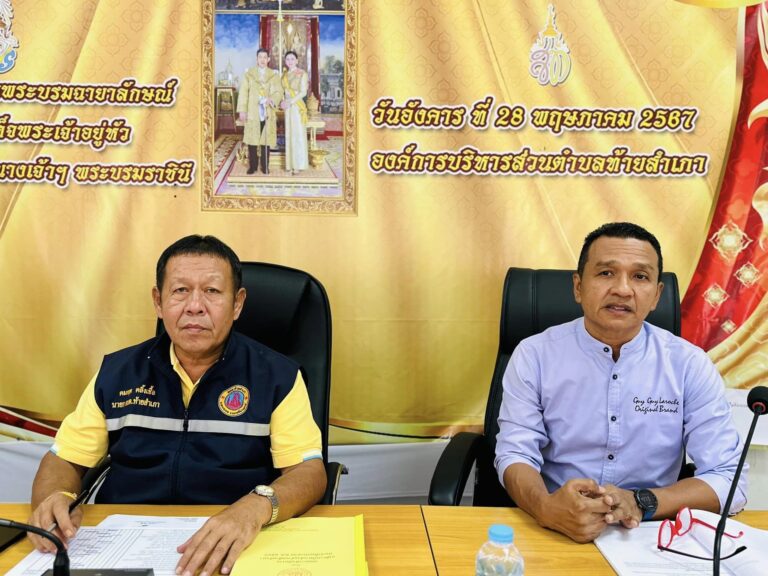 นายคมกฤต คลิ้งเชื้อ นายกองค์การบริหารส่วนตำบลท้ายสำเภา ประธานคณะกรรมการพัฒนาองค์การบริหารส่วนตำบลท้ายสำเภา พร้อมด้วย