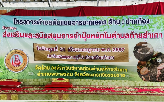 ร่วมกิจกรรมโครงการตำบลต้นแบบอาระเกษตร ด้าน:ปากท้อง กิจกรรม: ส่งเสริมและสนับสนุนการทำปุ๋ยหมักในตำบลท้ายสำเภา ปี 2567