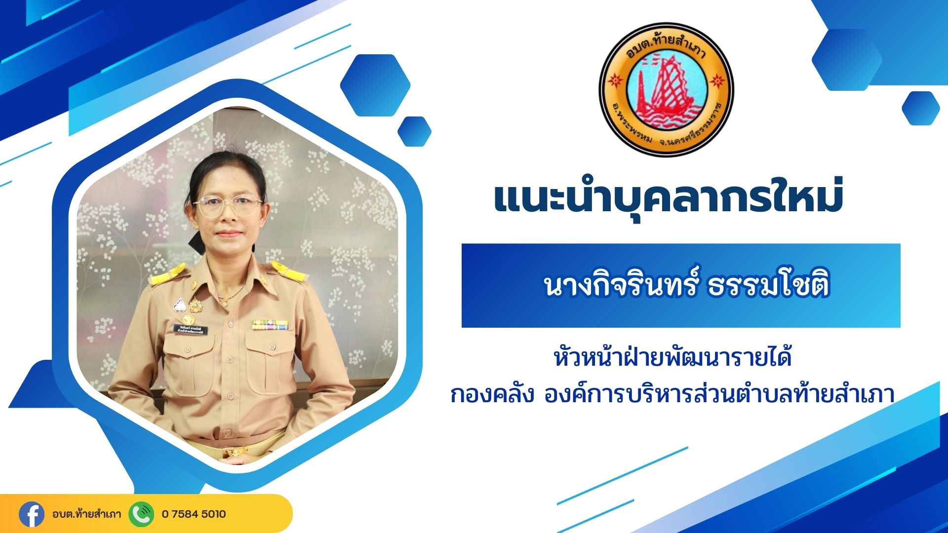 นางกิจรินทร์ ธรรมโชติ ตำแหน่งหัวหน้าฝ่ายพัฒนารายได้
