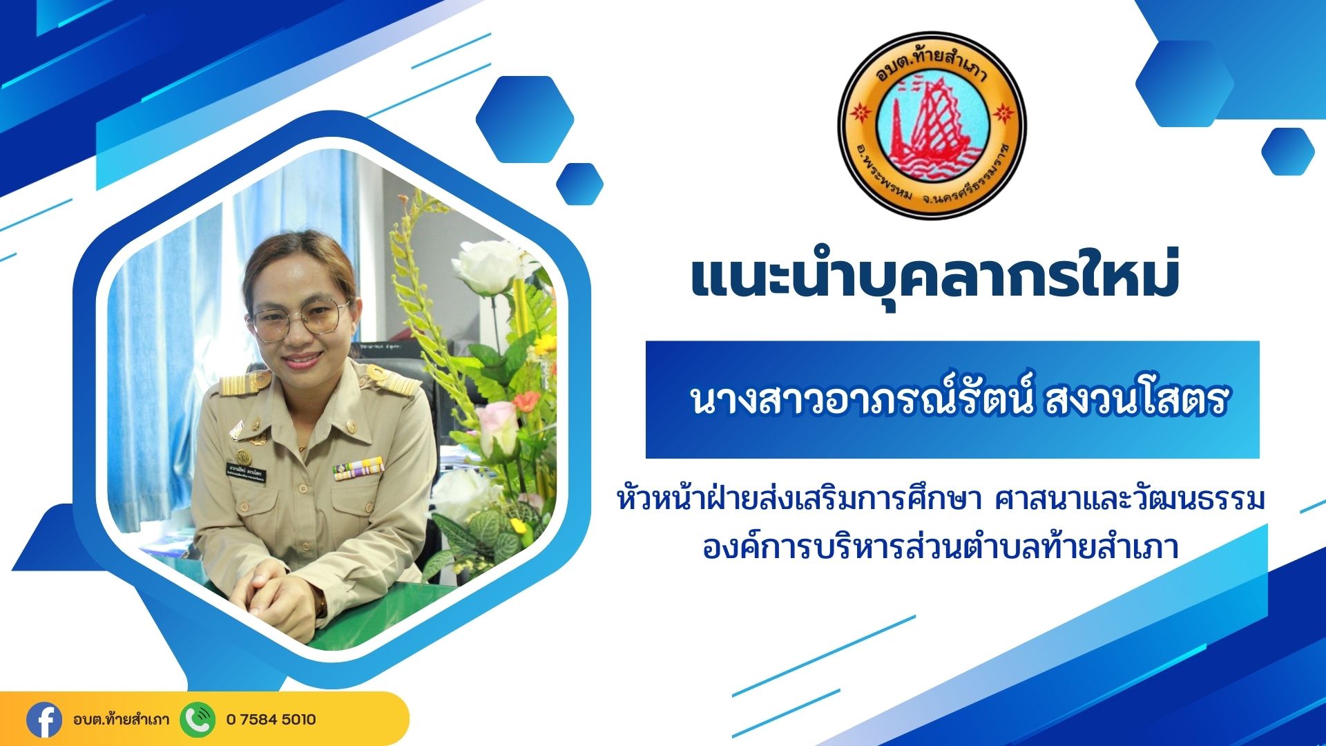นางสาวอาภรณ์รัตน์ สงวนโสตร ตำแหน่ง หัวหน้าฝ่ายส่งเสริมการศึกษา ศาสนาและวัฒนธรรม