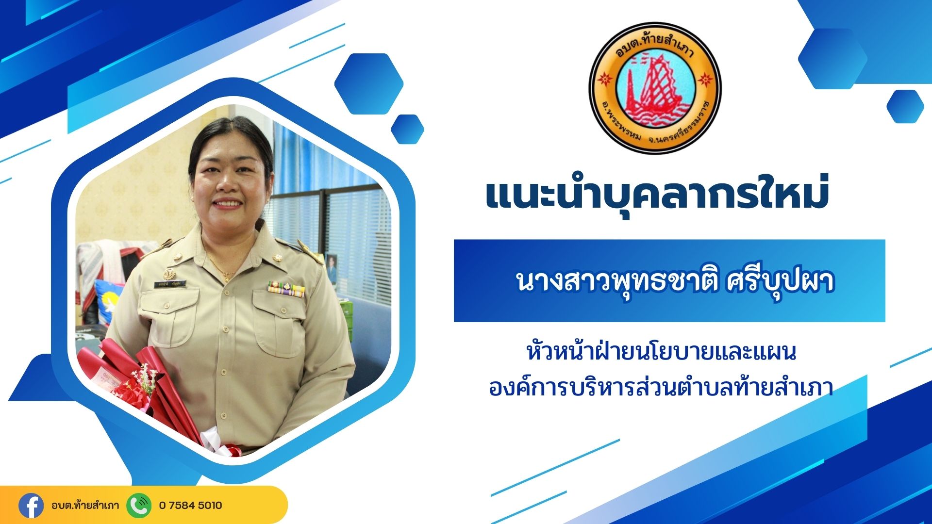 นางสาวพุทธชาติ ศรีบุปผา ตำแหน่ง หัวหน้าฝ่ายนโยบายและแผนงาน