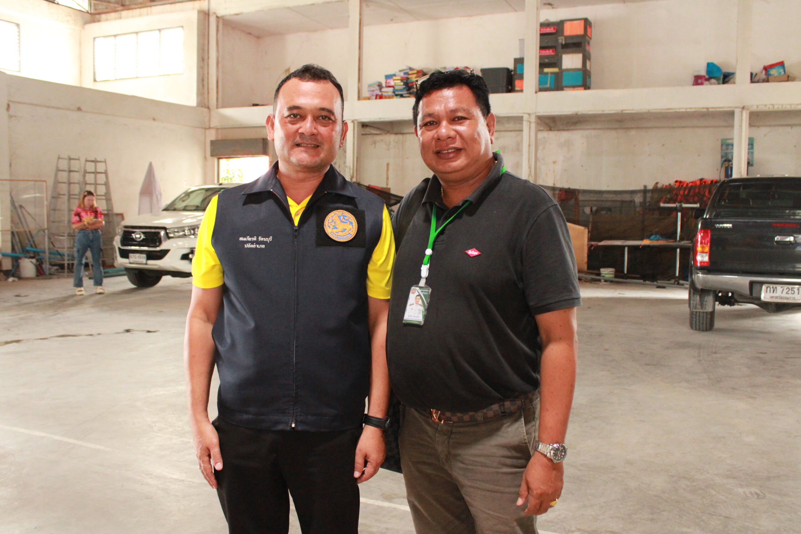 นายกนกพล ถาวรสาร หัวหน้าสำนักปลัด อบต.ท้ายสำเภา และนายสุธรรม ทองขาว หัวหน้าฝ่ายสวัสดิการสังคม และเจ้าหน้าที่ผู้เกี่ยวข้อง